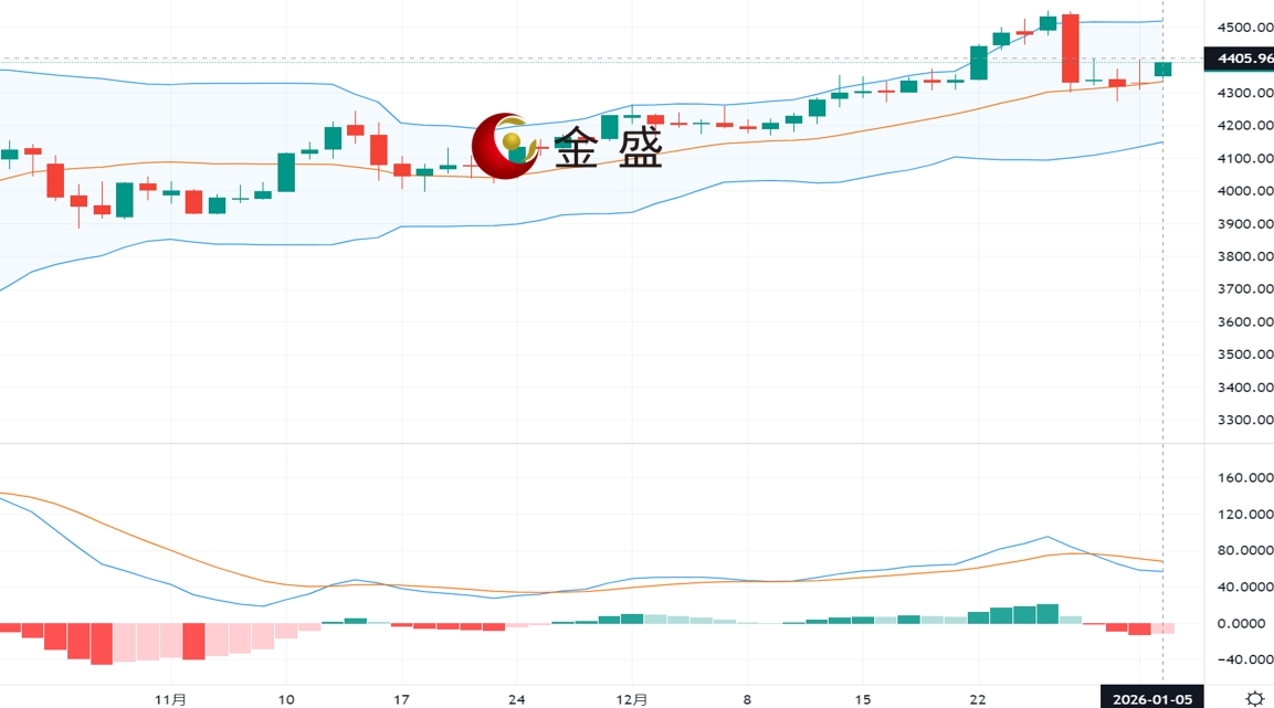 现货黄金上周五(1月2日)亚市早间开盘于4329.08美元/盎司,最高4402.14美元/盎司,最低4309.98美元/盎司,收盘4328.25美元/盎司,全天波幅约93美金,当日涨幅约0.27%。
