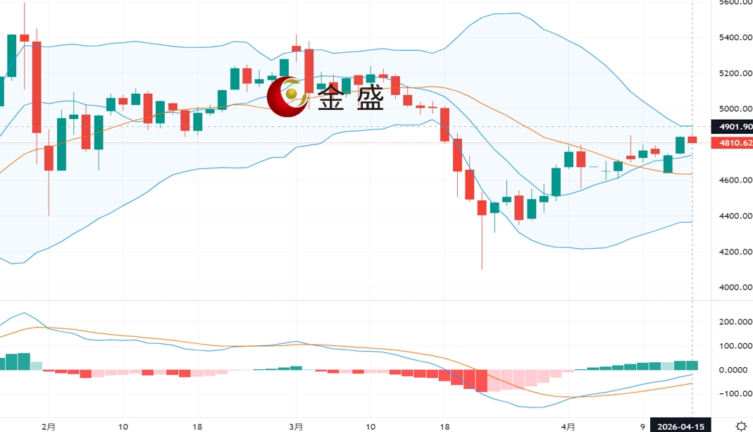 现货黄金周三(4月15日)开市于4807.94美元/盎司,盘中在触及近四周高点后承压回落,整体涨势有所放缓,价格目前坚守4800美元整数关口,美伊长期协议前景不明,霍尔木兹海峡局势持续不稳,美元小幅反弹对金价构成压制。伊朗驻联合国大使称美国封锁是对主权的严重侵犯,革命卫队誓言报复,地缘风险强化美元储备货币地位。
