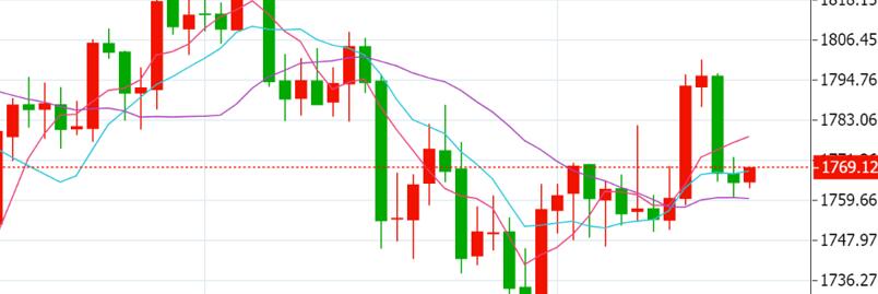 [2021/10/19 10:16]现货黄金隔日区间盘整,欧盘中一度失守1760关口,最终收跌,美债收益率上升削弱黄金吸引力,但更广泛金融市场的避险情绪限制了跌幅。
