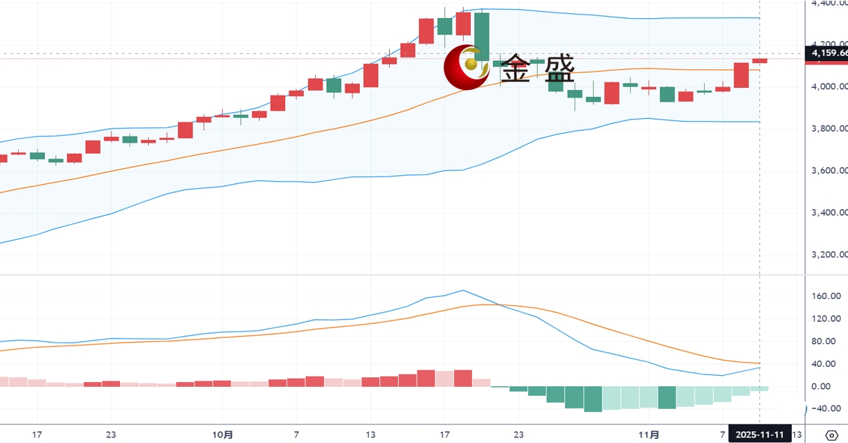 现货黄金周一(11月10日)亚市早间开盘于3999.79美元/盎司,最高4116.67美元/盎司,最低3997.80美元/盎司,收盘4115.48美元/盎司,全天波幅约119美金,当日涨幅约2.86%。
