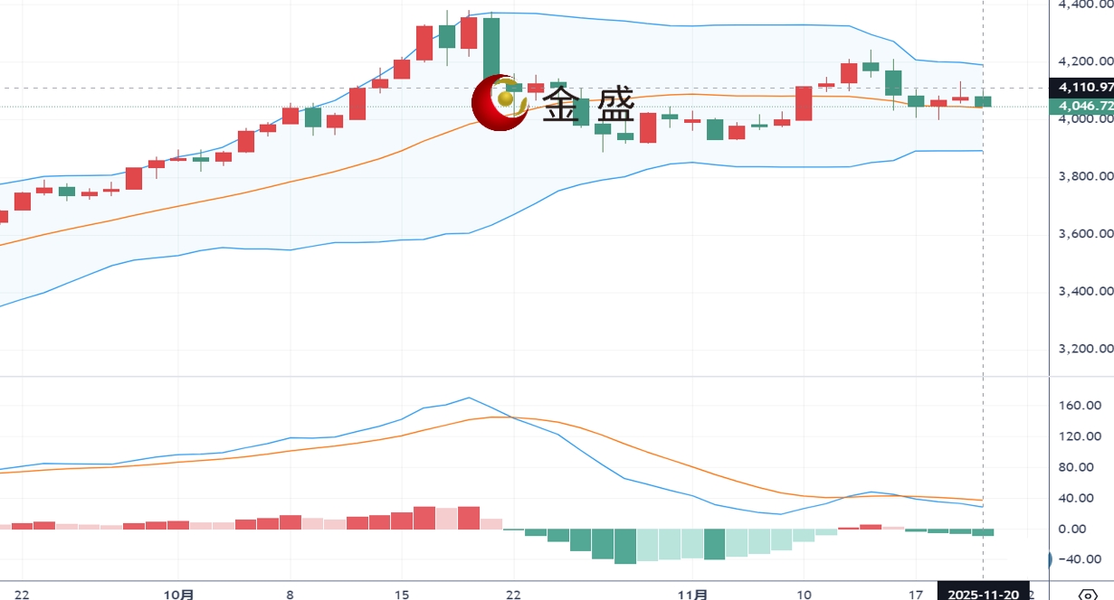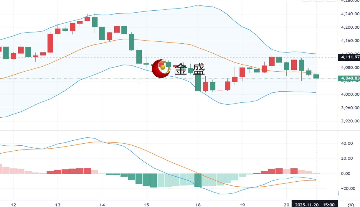 现货黄金周四(11月20日)开市于4079.95美元/盎司,盘中维持区间震荡,近期美联储12月降息的可能性进一步下降,在政策取向偏谨慎的前提下,美元走强并升至 5月以来的阶段高位,从而对不产生利息的黄金形成显著压制。但美国经济动能因长期政府停摆而存在不确定性,使金价下跌空间受限。