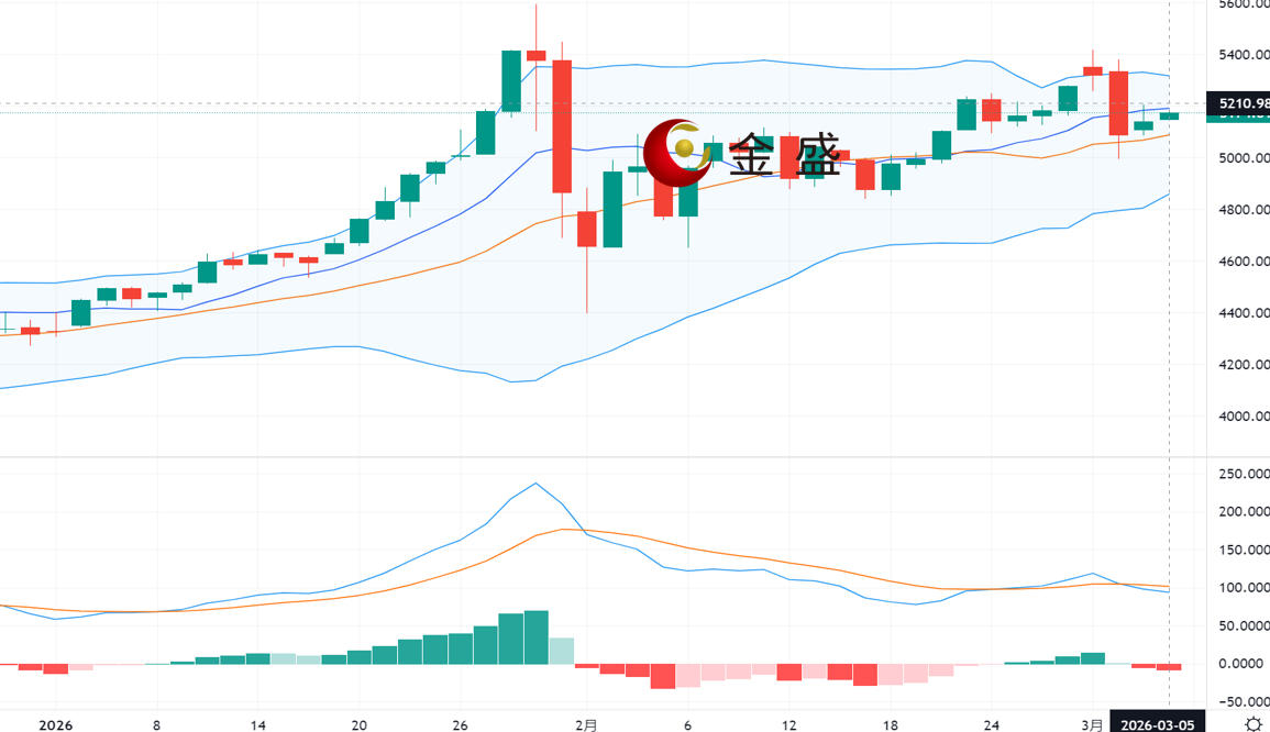 现货黄金周三(3月4日)亚市早间开盘于5094.86美元/盎司,最高5205.77美元/盎司,最低5065.17美元/盎司,收盘5151.08美元/盎司,全天波幅约145美金,当日涨幅约1.04%。