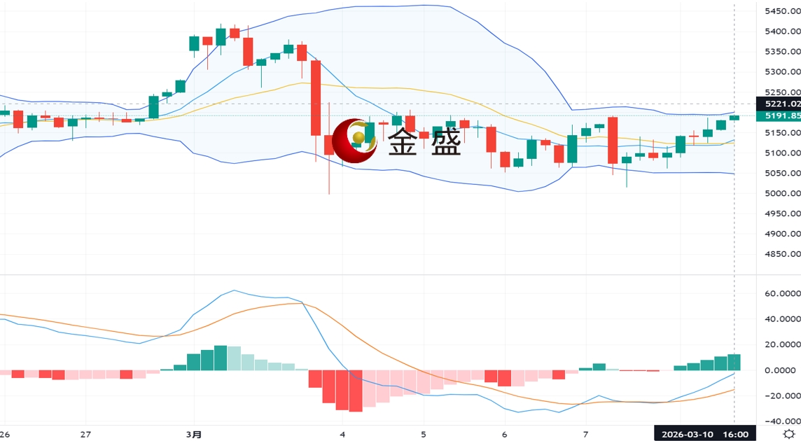 现货黄金周二(3月10日)开市于5099.45美元/盎司,盘中从5000美元心理关口附近获得支撑并吸引跟进买盘,一度升破5190美元/盎司,抹去前一交易日的跌幅。地缘政治风险持续为避险需求提供支持,尽管美元走强与通胀担忧共同限制涨幅,金价仍维持温和反弹态势。任何迹象表明白宫准备结束与伊朗的战争(目前已进入第二周),都可能缓解此前压制金价的一部分压力。