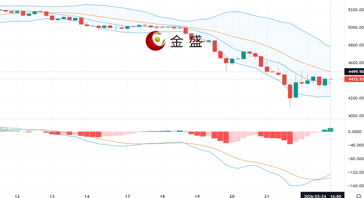 现货黄金周二(3月24日)开市于4364.0美元/盎司,盘中冲高回落,在前一交易日自低点反弹后再度承压,显示市场抛压仍然明显。中东局势持续紧张推升油价与通胀预期,市场对美联储降息预期基本消退并转向加息押注,黄金承压运行。尽管金价昨日在4100美元附近获得技术支撑,但美元走强与美债收益率上行限制反弹空间。