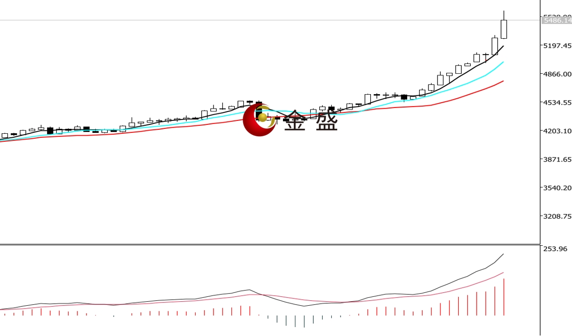 前一个交易日,黄金依托5100美元关口继续上行,白盘在小时图出现一波八连阳,价格突破5300美元大关。晚盘进入高位的横盘休整。次日凌晨利率决议符合预期,金价再次大涨突破5400美元一带。均线系统多头排列,运行在价格下方形成支撑。MACD指标快慢线零轴上方现金叉,做多的动能为主。黄金趋势不变,价格加速上行。今天早盘出现宽幅巨震,价格上冲5600美元一带有调整,操作上做多为主。 一旦价格跌破5400美元一带,则偏向回调加大。