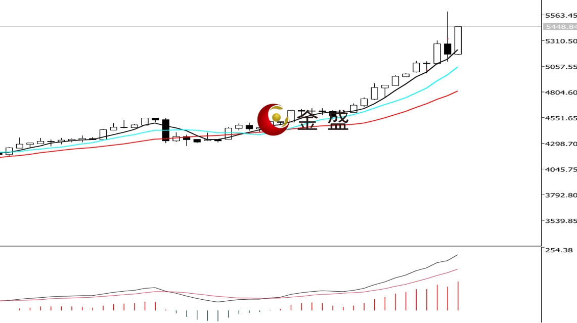 前一个交易日,亚盘时段,黄金加速拉升至5600美元一带,盘口一小时拉升近两百美金,午后行情高位窄幅休整。晚盘时段,芝商所再度上调保证金,黄金大幅跳水,一小时跌破三个百元关口,价格跌至5100美元附近有反扑,最终收长上影的阴线。均线系统多头排列,运行在价格下方形成支撑。MACD指标快慢线零轴上方现金叉,做多的动能为主。黄金上行趋势不变,但昨日高位调整近五百美金,空头力度明显增强。5500美元上方压力明显,短期看高位宽幅震荡,操作上高抛低吸。
