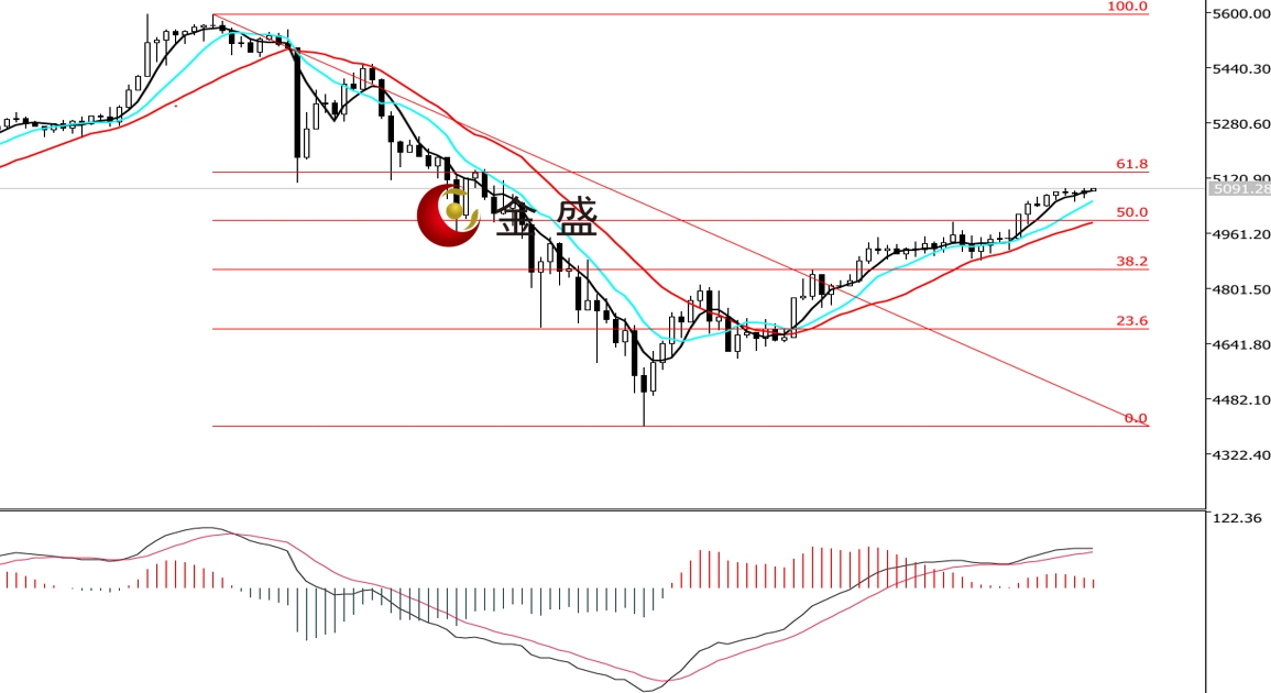 前一个交易日,美国政府结束部分停摆,美指终结连阳反弹收阴线。黄金多头发起猛烈反扑,盘中一度创下历史最大单日涨幅,金价逼近五千大关,日图形成阳包阴结构。今天日内行情继续上行,当日涨幅近3%。小时图,均线系统多头排列,运行在价格下方形成支撑。MACD指标快慢线零轴上方运行,做多的动能减弱。黄金上行趋势不变,中长线看涨逻辑不变。前一波调整的黄金分割位如图所示,价格逼近5100美元一带,多头收复大部分的失地。行情高位偏向进入休整周期,故短期关注压力位的反转信号,操作上高抛低吸。