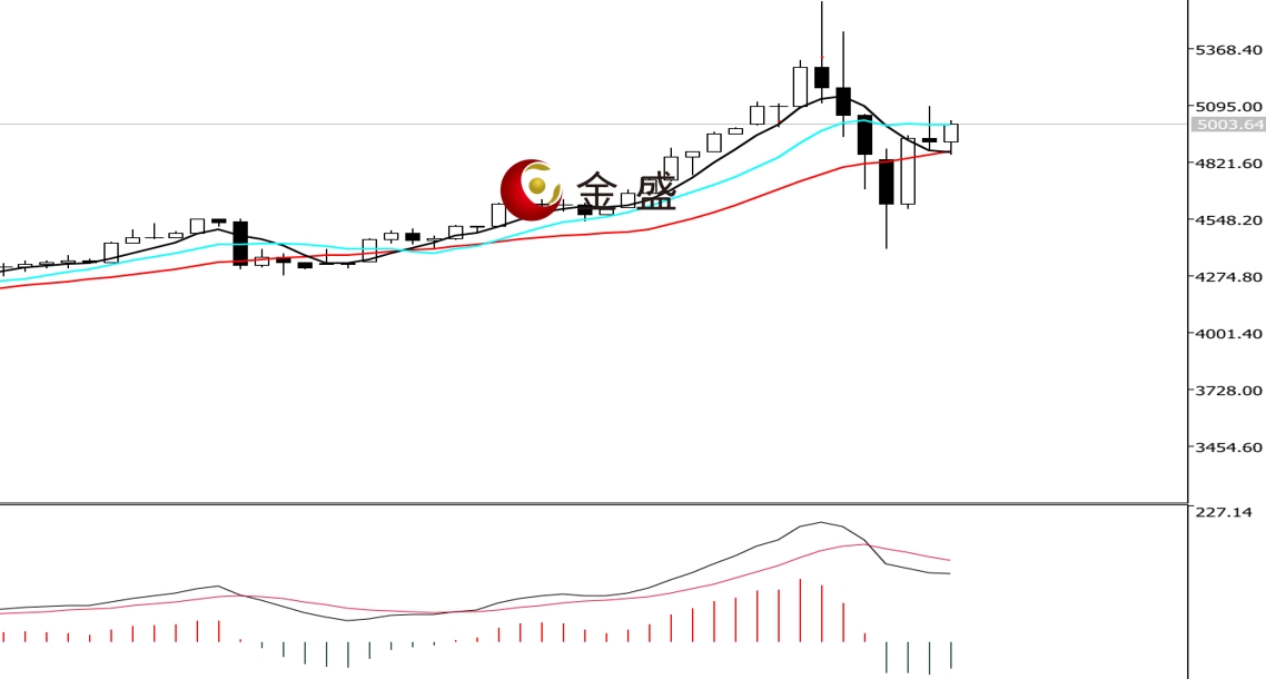 前一个交易日,黄金坚守4900美元关口延续反弹,亚盘强势突破五千大关,午后承压5100美元附近横盘整理。晚盘时段,美国经济数据好坏参半,金价拐头下行,多头回吐当日全部涨幅,最终收长上影的阴K。均线系统不断收敛,价格围绕其止跌。MACD指标快慢线零轴上方现死叉,做空的动能为主。黄金上行趋势不变,价格暴跌至 4400美元一带出现止跌信号。昨日反弹受阻收长影线,确认5100美元关口的抛压较强。短期行情或进入高位的休整,操作上高抛低吸。