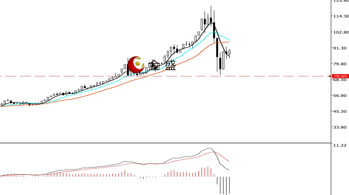 前一个交易日,白银围绕83美元一带短暂横盘后延续反弹,亚盘突破低位震荡区间,确认反弹升级,午后冲上90美元大关。晚盘时段,行情冲高调整回吐日内全部涨幅,价格最高至92.17美元。日图收阴线。均线系统不断收敛,运行在价格上方形成阻碍。MACD指标快慢线零轴上方现死叉,做空的动能为主。白银回踩前一波暴涨的起点止跌回升,确认70美元一带的支撑有效。暴跌后的反弹动能有减缓的迹象,但小时周期的反弹结构还未破坏。短期关注昨日高点是否再度承压,操作上高抛低吸。