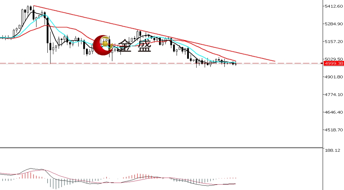 前一个交易日,美指延续调整再收阴线。黄金波动平稳,多空继续围绕五千关口整理,近两日形成新的箱体结构。今天日内利率决议公布前,市场波动进一步收窄,多空进入胶着状态。四小时周期,均线系统收敛走平,布林带中轨对价格反弹形成压制。MACD指标快慢线零轴下方现金叉,做多的动能有走强的迹象。黄金自上周的调整形成下行趋势,周内价格围绕五千一带横盘逾两天,构成4970—5040的下跌中继结构。短期关注区间如何打破。一旦突破结构上轨,则偏向测试趋势线附近的压力。