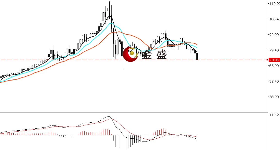 前一个交易日,白银走势与黄金类似,行情承压80美元关口震荡下行,当日收跌逾4%。今天利率决议利空的消息继续发酵,银价反弹乏力,午后再度下挫逼近70美元关口。日图周期,均线系统收敛向下拐头,均线对价格反弹形成压制。MACD指标快慢线零轴附近现死叉,做空的动能为主。白银围绕图示的中继结构盘整近三周,价格来到形态的下轨附近,短期可能尝试变盘,下方关注70美元关口的得失,一旦破位,则下行空间打开。