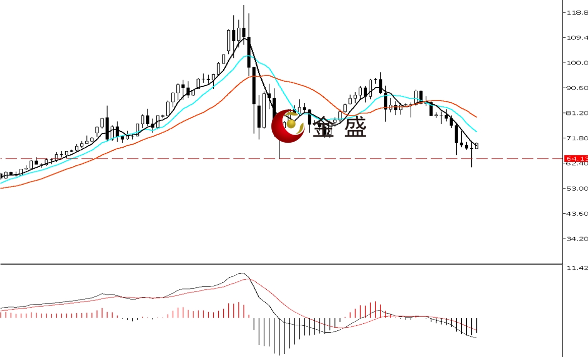 前一个交易日,白盘时段,行情承压69美元附近持续下挫,盘中一小时下挫逾三美金,午后跌势减缓,价格探底至61美元一带止跌转涨。晚盘时段,随着中东局势好转,白银一小时拉升五美金,多头收复日内全部跌幅,价格最高至70.72美元。日图收长下影十字星。均线系统收敛向下拐头,压制价格反弹。MACD指标快慢线零轴附近现死叉,做空的动能为主。白银创新低后有反抽,价格未走出近期震荡区间,再度强化64美元下方支撑明显。后市行情或震荡偏反抽,操作上低吸为主。
