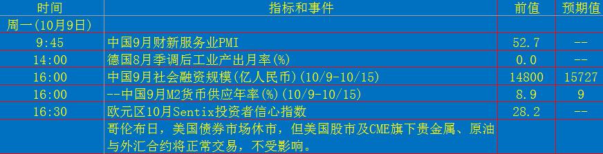 重点关注数据:中国9月贸易帐(按人民币计)(亿) 美国9月季调后CPI月率 美国9月零售销售月率 美国10月密歇根大学消费者信心指数初值