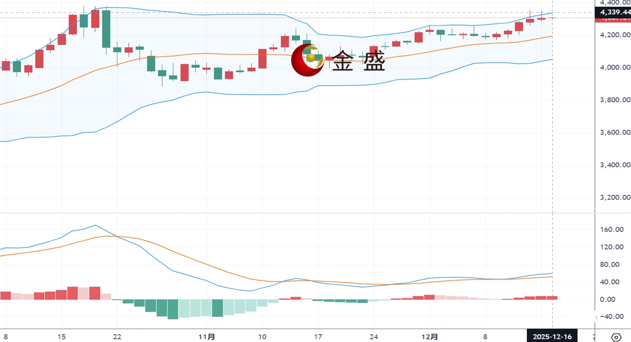 现货黄金周一(12月15日)亚市早间开盘于4300.63美元/盎司,最高4350.63美元/盎司,最低4285.54美元/盎司,收盘4318.04美元/盎司,全天波幅约65美金,当日涨幅约0.12%。
