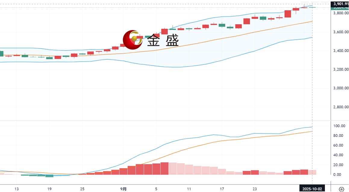 现货黄金周三(10月1日)亚市早间开盘于3859.05美元/盎司,最高3895.39美元/盎司,最低3853.23美元/盎司,收盘3865.63美元/盎司,全天波幅约42美金,当日涨幅约0.19%。