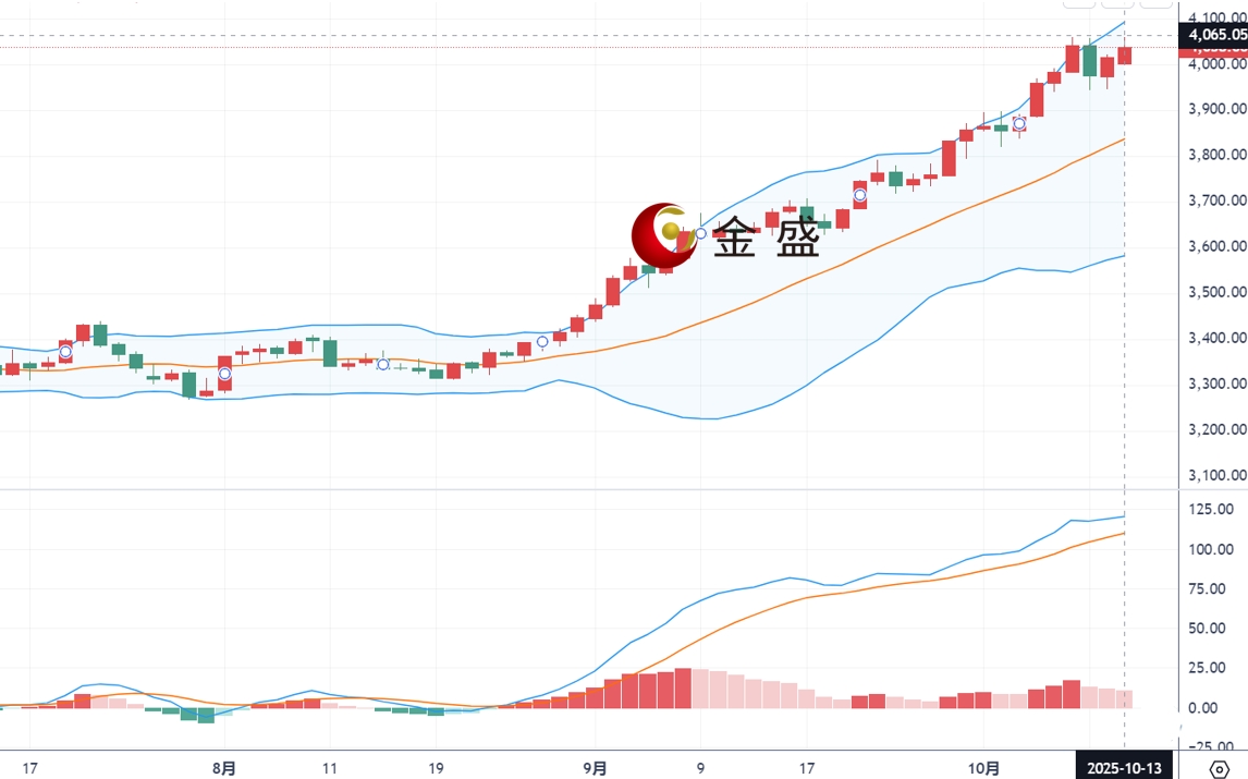 现货黄金上周五(10月10日)亚市早间开盘于3974.74美元/盎司,最高4022.94美元/盎司,最低3946.64美元/盎司,收盘4016.45美元/盎司,全天波幅约76美金,当日涨幅约1.02%。
