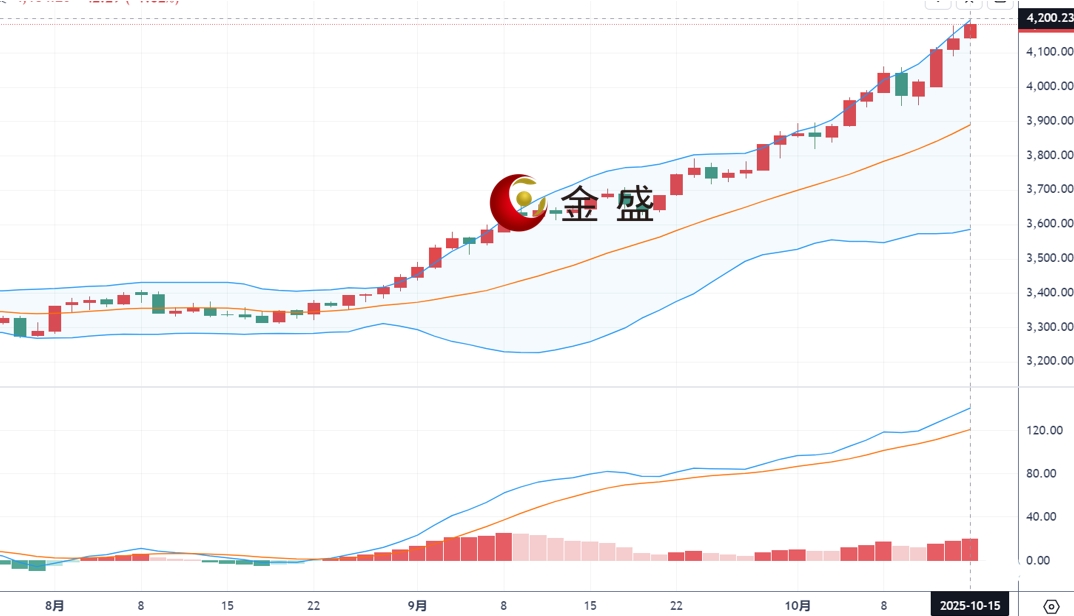 现货黄金周二(10月14日)亚市早间开盘于4110.38美元/盎司,最高4179.73美元/盎司,最低4090.24美元/盎司,收盘4141.91美元/盎司,全天波幅约89美金,当日涨幅约0.77%。