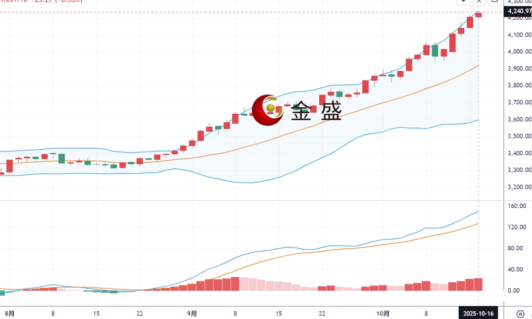 现货黄金周三(10月15日)亚市早间开盘于4143.88美元/盎司,最高4218.33美元/盎司,最低4140.40美元/盎司,收盘4207.85美元/盎司,全天波幅约78美金,当日涨幅约1.59%。