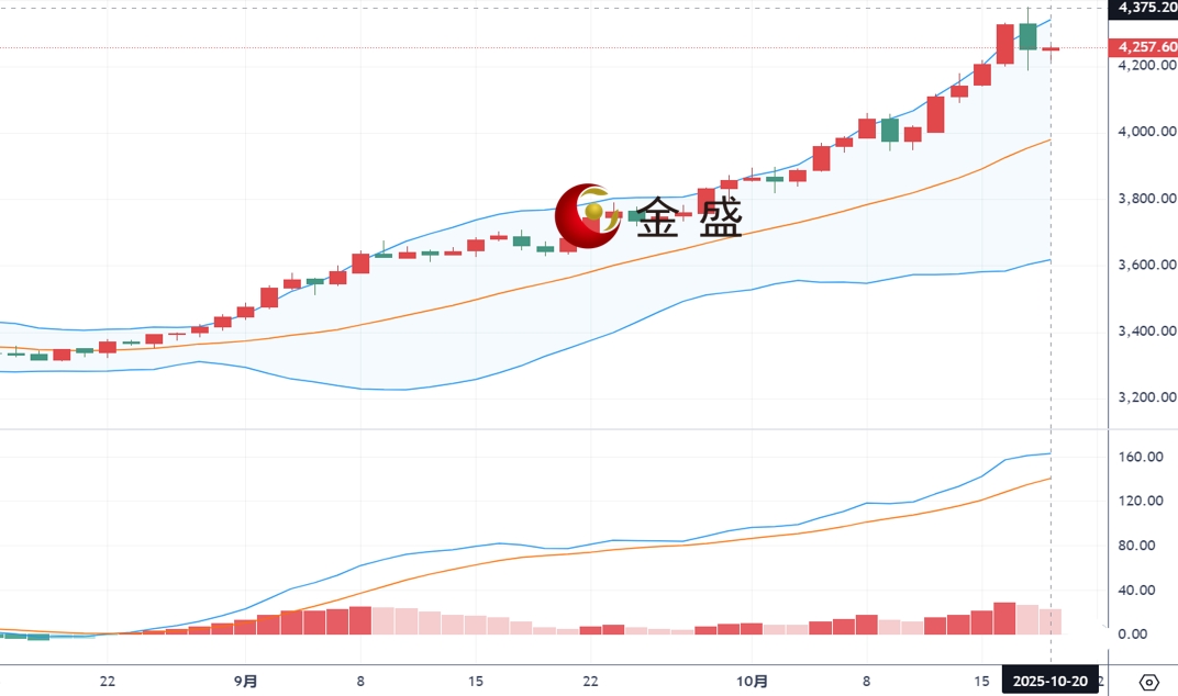 现货黄金周一(10月20日)开市于4248.92美元/盎司,盘中一度冲高至4274美元/盎司的高位后回落,一度跌至4219附近,但逢低买盘避险继续支撑金价。目前金价于4257美元/盎司附近震荡,持续存在的贸易不确定性、地缘政治风险升温,以及对美国政府长期停摆可能拖累经济表现的担忧,持续为避险贵金属提供支撑。此外,市场对美联储的鸽派预期也巩固了无息黄金的需求。