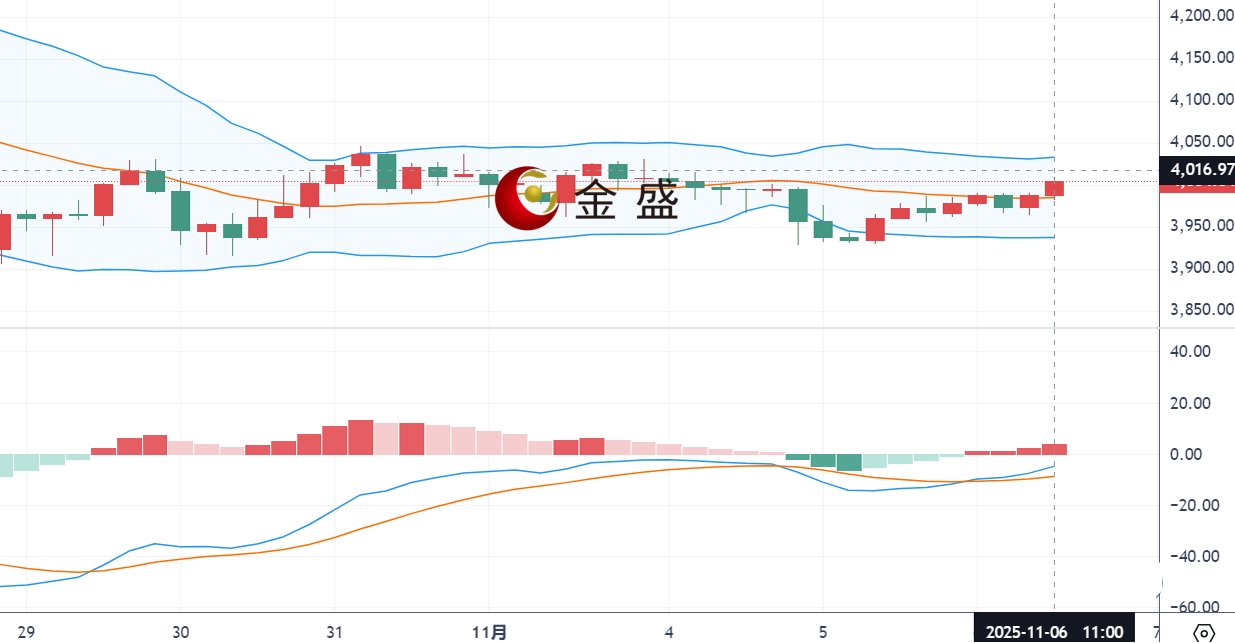 现货黄金周四(11月6日)开市于3982.82美元/盎司,盘中震荡走高,一度短线拉升逾20美元,刷新三个交易日高点至4009美元/盎司,因美元从四个月高点回落,且政府停摆风险下美国经济前景不明朗。美联储的未来政策方向成为交易员关注焦点,而最新公布的美国就业数据则在短期内推动美元反弹,削弱了黄金吸引力。