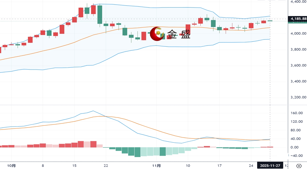 现货黄金周三(11月26日)亚市早间开盘于4133.98美元/盎司,最高4173.25美元/盎司,最低4129.66美元/盎司,收盘4163.76美元/盎司,全天波幅约44美金,当日涨幅约0.8%。