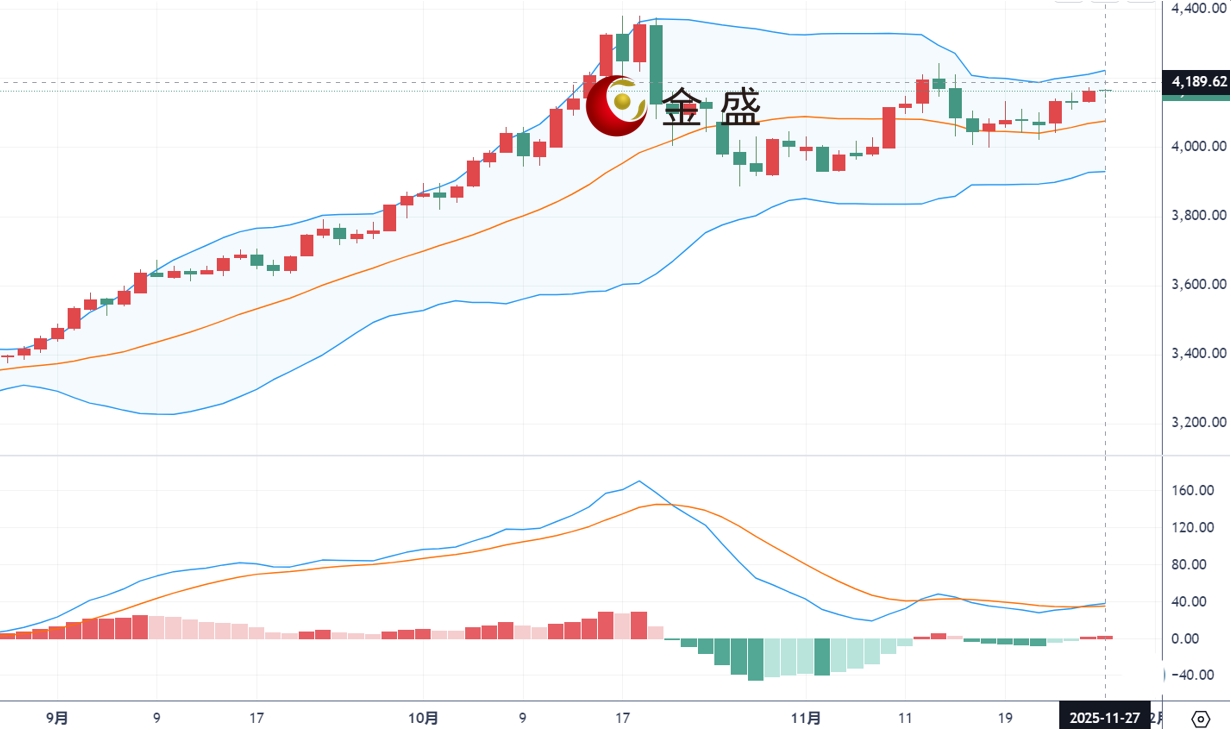 现货黄金周四(11月27日)开市于4164.72美元/盎司,盘中在前期上涨后出现小幅回落,主要受市场风险偏好改善及和平谈判预期升温影响。然而,美联储12月降息预期仍强,使美元承压,继续为黄金提供支撑。多项美国经济数据表现不一,但未动摇市场对降息的判断。