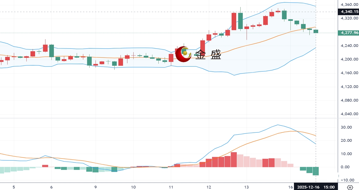 现货黄金周二(12月16日)开市于4318.03美元/盎司,盘中出现下跌,一度跌至4271美元/盎司附近,主要受到短期交易者的获利了结和弱多头平仓的影响。此外,乌克兰和平谈判取得积极进展的乐观情绪,也在一定程度上削弱了黄金作为传统避险资产的吸引力,导致其需求暂时减弱。