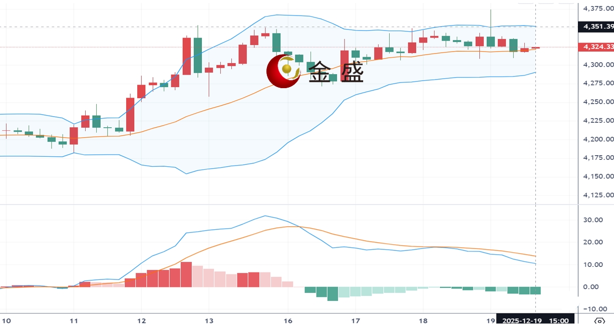 现货黄金周五(12月19日)开市于4337.93美元/盎司,盘中小幅走低,一度跌至4310美元附近,主要受获利了结和逢低买盘影响。美国CPI疲软削弱了黄金作为通胀对冲工具的地位。此外,美元买盘的回升以及积极的市场风险偏好情绪,也对金价构成额外的下行压力。