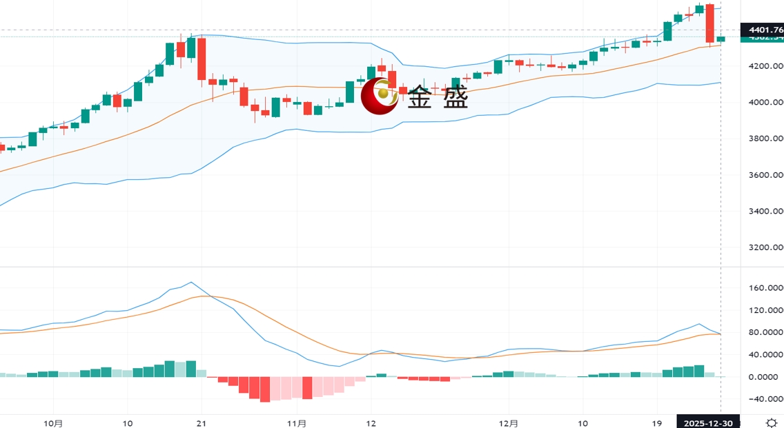 现货黄金周二(12月30日)开市于4325.02美元/盎司,盘中小幅反弹,一度突破4380美元/盎司关口,避险买盘和逢低买盘给金价提供反弹动能。另外,市场对地缘局势的担忧情绪有所回升,也吸引避险买盘支撑金价。
