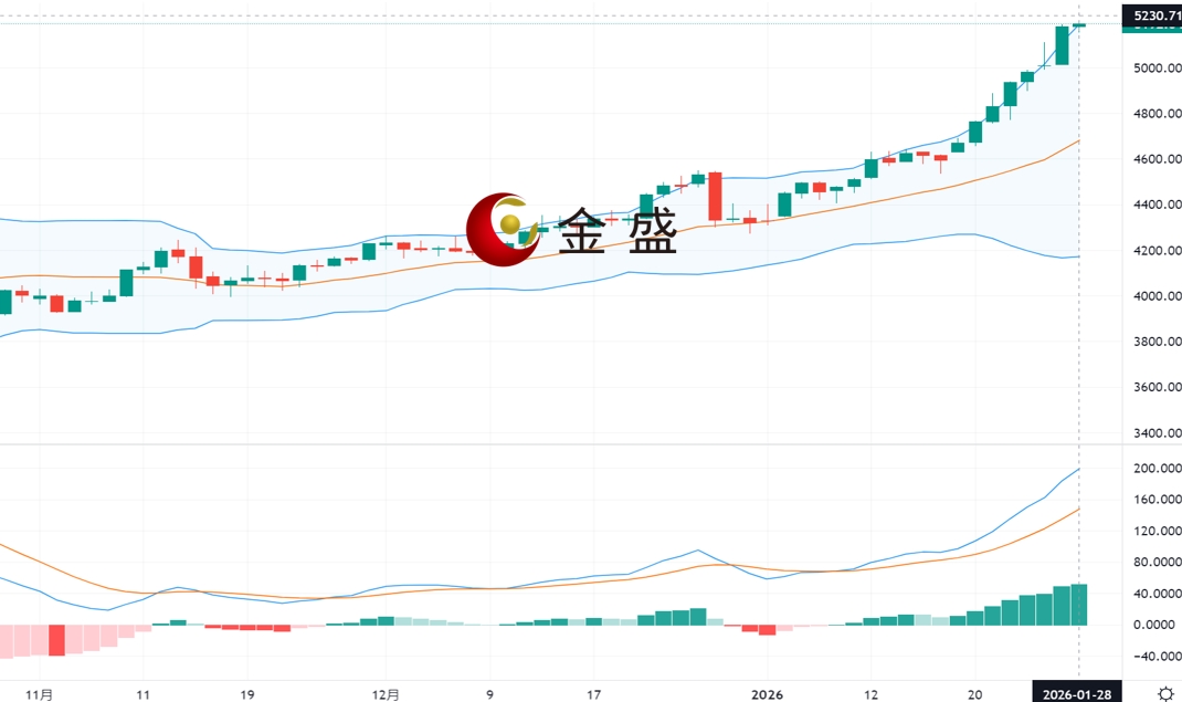 现货黄金周二(1月27日)亚市早间开盘于5091.15美元/盎司,最高5190.09美元/盎司,最低4989.96美元/盎司,收盘5090.68美元/盎司,全天波幅约201美金,当日涨幅约3.45%。