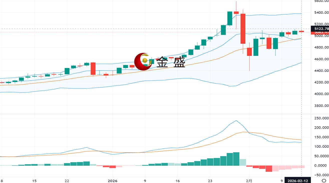 现货黄金周三(2月11日)亚市早间开盘于5019.39美元/盎司,最高5118.83美元/盎司,最低5004.78美元/盎司,收盘5059.95美元/盎司,全天波幅约104美金,当日涨幅约1.18%。
