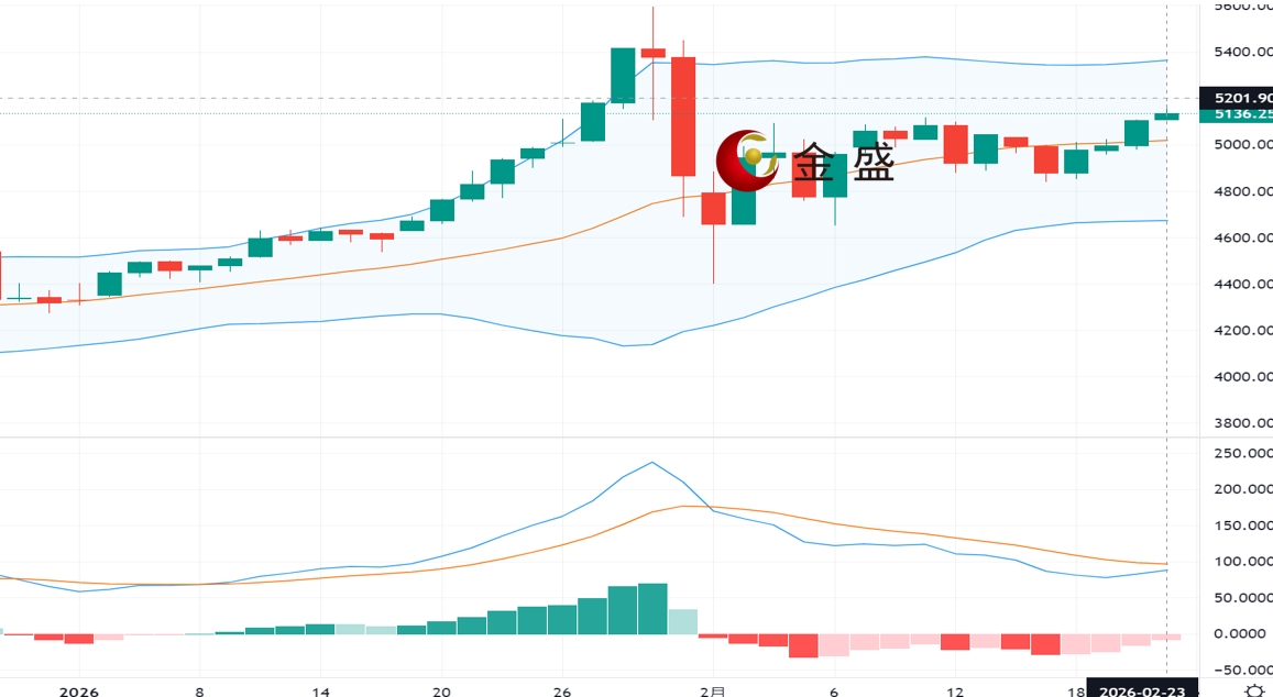 现货黄金上周五(2月20日)亚市早间开盘于5013.57美元/盎司,最高5171.52美元/盎司,最低4981.64美元/盎司,收盘5099.26美元/盎司,全天波幅约61美金,当日涨幅约2.17%。