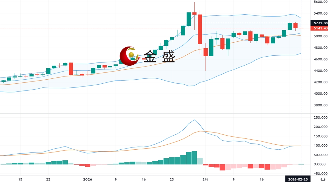 现货黄金周二(2月24日)亚市早间开盘于5196.18美元/盎司,最高5249.27美元/盎司,最低5093.93美元/盎司,收盘5150.05美元/盎司,全天波幅约156金,当日跌幅约1.63%。