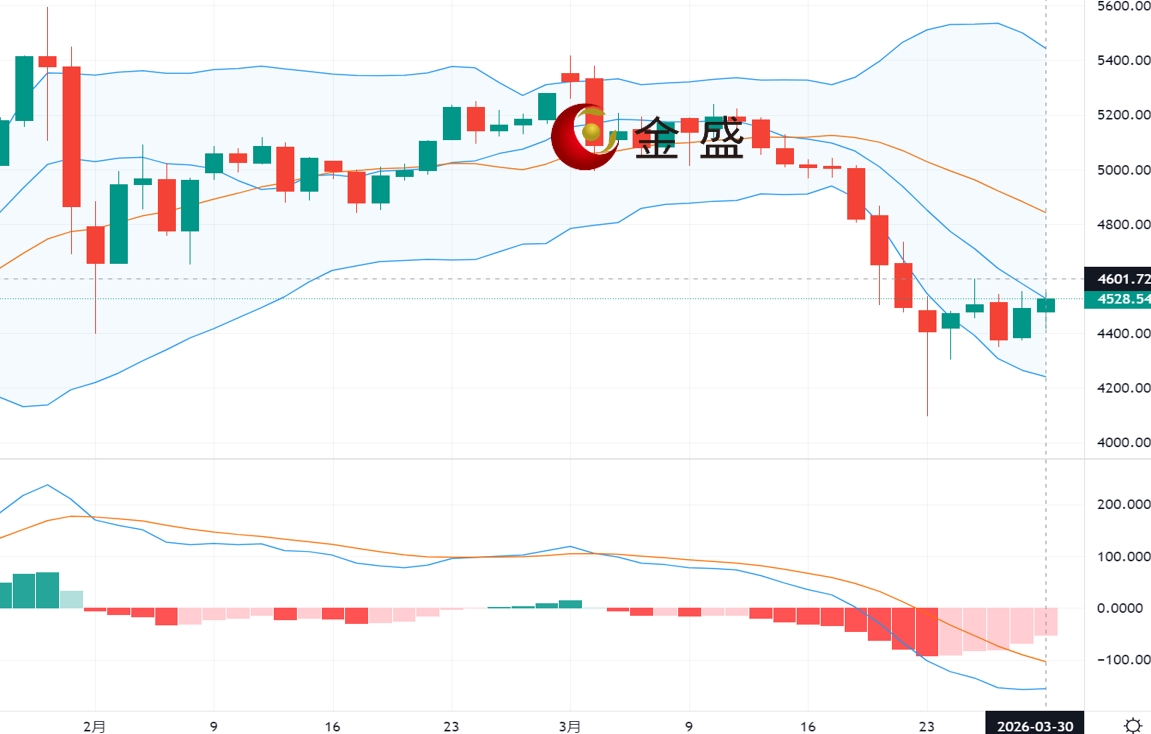 现货黄金周一(3月30日)开市于4501.74美元/盎司,盘中在短暂回落至4420美元附近后迅速反弹,重新站上4500美元关口,因冲高回落提供支撑,但能源价格飙升加剧通胀担忧,进一步削弱市场对美联储年内降息的预期,从而限制了金价的上行空间。随着战争进入第二个月,周末期间袭击并未停歇,这加剧了市场对冲突长期化的担忧。市场担心,这可能导致各国央行出售黄金,并通过加息来遏制通胀。
