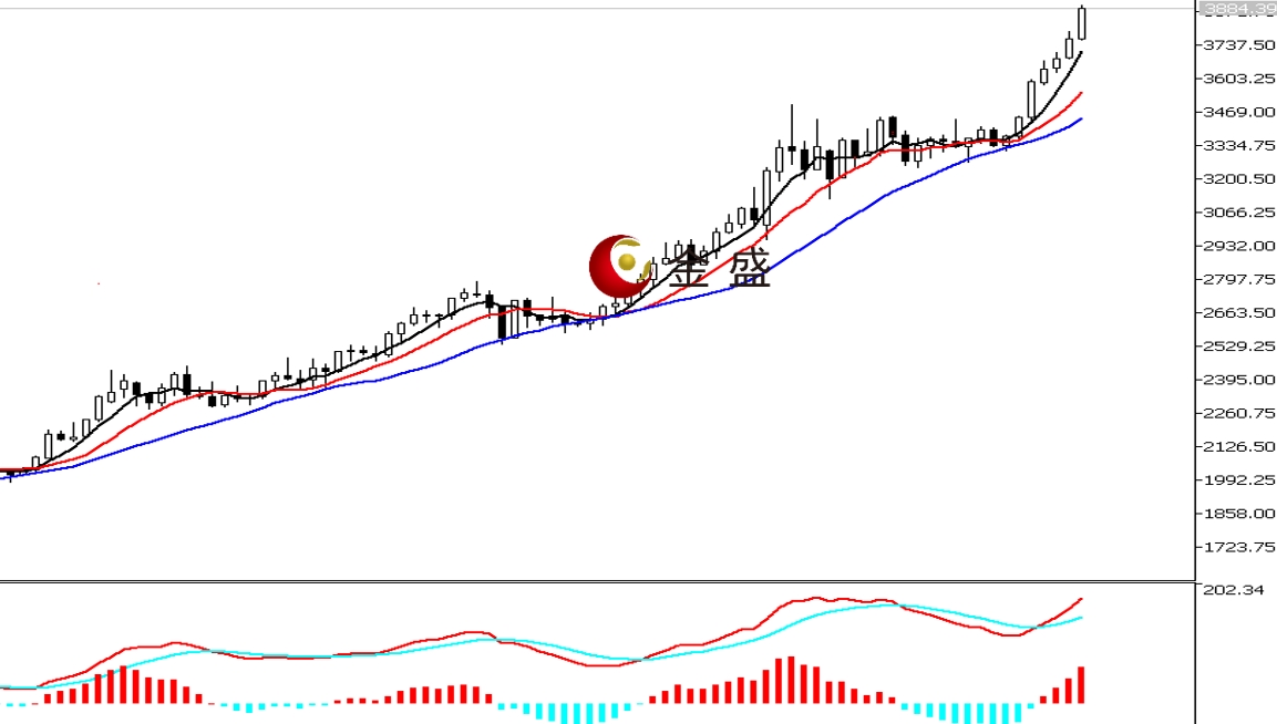 现货黄金开盘3760.4美元/盎司,最高3896.53美元/盎司,最低3757.71美元/盎司,收盘3884.39美元/盎司。