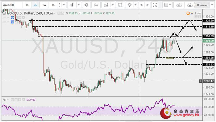 国际现货黄金上周五(11月4日)亚盘和欧盘小幅回落后又再度拉升至高位,美盘受非农影响有限,基本维持高位震荡走势。上方仍然关注1309美元/盎司附近的阻力。突破1309美元/盎司有机会进一步拉升,看1320和1325美元/盎司两线。突破不了会出现回落,下方关注1295、1287-1285和1277美元/盎司的支持,若回落获得有效支撑,可以做多。