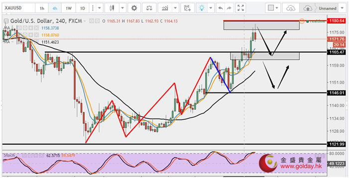 国际现货黄金周四(1月5日)亚盘和欧盘基本维持高位震荡后小幅回落的走势。早间和大家说过注意1175-1180美元/盎司区间的阻力。下方关注1160-1165和1150-1145美元/盎司的支撑表现,获得支撑可以做多,下破则继续观望。上方依然关注1175-1180美元/盎司区间的阻力,突破1165美元/盎司小周期价格有望能够进一步走高。