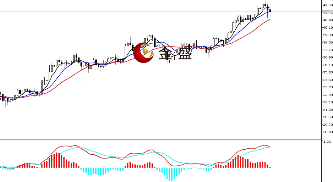 前一个交易日,白盘时段,银价开市即创当日高点42.62美元,早盘跳水跌破42美元大关,午后延续下挫至日内低点41.13美元。晚盘时段,行情承压42美元一带整理,利率决议公布后,价格一小时波动逾一美金,价格回踩日内低点后有所反抽,最终收有下影线的阴K。均线系统多头排列,价格回踩十周期均线。MACD指标快慢线零轴上方现死叉,做多的动能衰竭。白银上涨趋势不变,但价格连续两日回落,K线形成黄昏星看跌组合。行情或进入调整周期,短期关注布林带中轨的得失,操作高抛低吸。