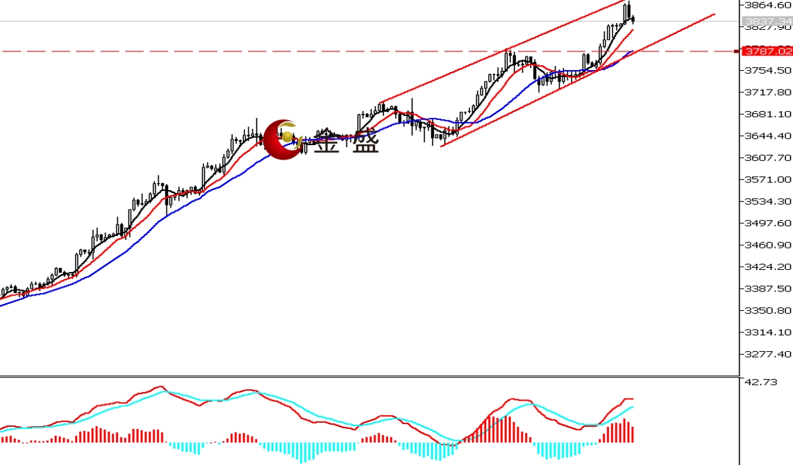 现货黄金周二(9月30日)开市于3833.26美元/盎司。亚欧盘时段,美指承压98美元关口震荡下行,午后刷新昨日低点。黄金延续上行,早盘拉升逾四十美金,午后回吐日内全部涨幅。截止目前,金价最高3871.43美元/盎司,最低3810.43美元/盎司。黄金上行趋势不变,价格近期的走势形成收敛结构。日内价格先涨后跌走尖顶结构,短期回调力度有增强。今天是月线收官日,不排除部分多头主动获利了结。下方关注3800美元一带的支撑,操作上低吸为主。
