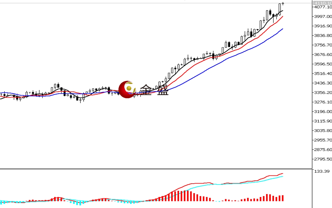 前一个交易日,白盘时段,受贸易关税影响,黄金开市即创当日低点4003.3美元,早盘一小时拉升逾四十美金。午后突破上周高点。晚盘时段,行情涨势不减,价格持续新高突破4100美元关口,尾盘创当日高点4116.75美元,日图收饱满大阳线。均线系统多头排列,运行在价格下方形成支撑。MACD指标快慢线零轴上方现金叉,做多的动能为主。黄金上行趋势不变,昨日避险情绪有所降温,但金价依然单边大涨,创近两个月以来最大的日图阳线,市场做多情绪强烈,操作上低吸为主。