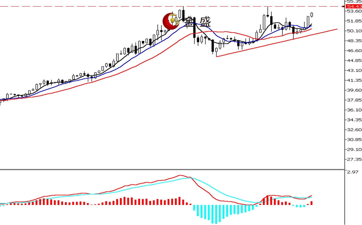 前一个交易日,白盘时段,行情依托日内低点51.3美元震荡上行,午后突破52美元关口。晚盘时段,价格围绕上周高点盘整数小时,随后一小时拉升0.8美元,确认强势突破,尾盘连续小阳星攀升至日内高点53.34美元。均线系统收敛向上拐头,对价格反弹形成支撑。MACD指标快慢线零轴上方现金叉,做多的动能增强。白银连续三日上行,昨日的K线实体相比前两日有所放大,可见突破上周高点有新增资金入场。后市看前高54美元一带的压力反应。