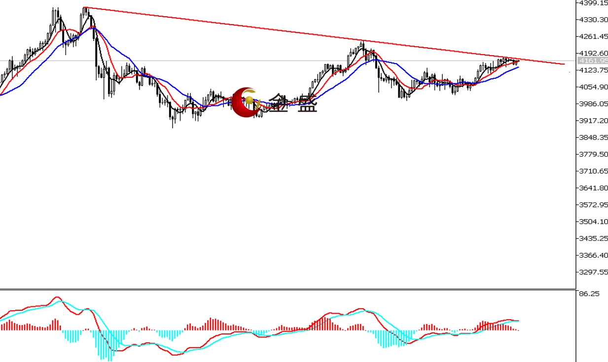 现货黄金周四(11月27日)开市于4163.47美元/盎司。亚欧盘时段,美指回踩日图趋势线有所反抽,日内走V型反转。黄金承压昨日高点有所回调,午后收复全部跌幅,多空博弈的空间进一步收窄。截止目前,金价最高4168.5美元/盎司,最低4142.59美元/盎司。黄金周内持续上行,价格来到收敛三角形的上轨压力位,但K线反转信号不强,可见市场抛盘不足。随着白银的持续拉升,黄金或跟随上行,故行情上行变盘的概率较大, 短期关注向上的真假破位。