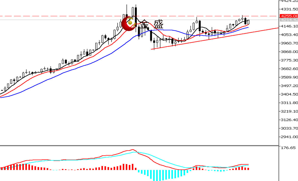 前一个交易日,白盘时段,黄金承压4240美元一带震荡下行,盘中多次出现跳水现象,价格一小时下挫三十美金左右,午后多头刺破4200美元大关。晚盘时段,行情先震荡上行,收复日内大部分跌幅,尾盘再度跳水近六十美金,创当日低点4163.62美元,日图收饱满阴线。均线系统逐渐向上拐头,运行在价格下方形成支撑。MACD指标快慢线零轴附近现金叉,做多的动能减弱。昨日黄金延续回落,且出现加速迹象,日图形成阴包阳的看跌结构。4230美元一带是多空分水岭,价格能突破,则行情将震荡上行,反之则继续调整。