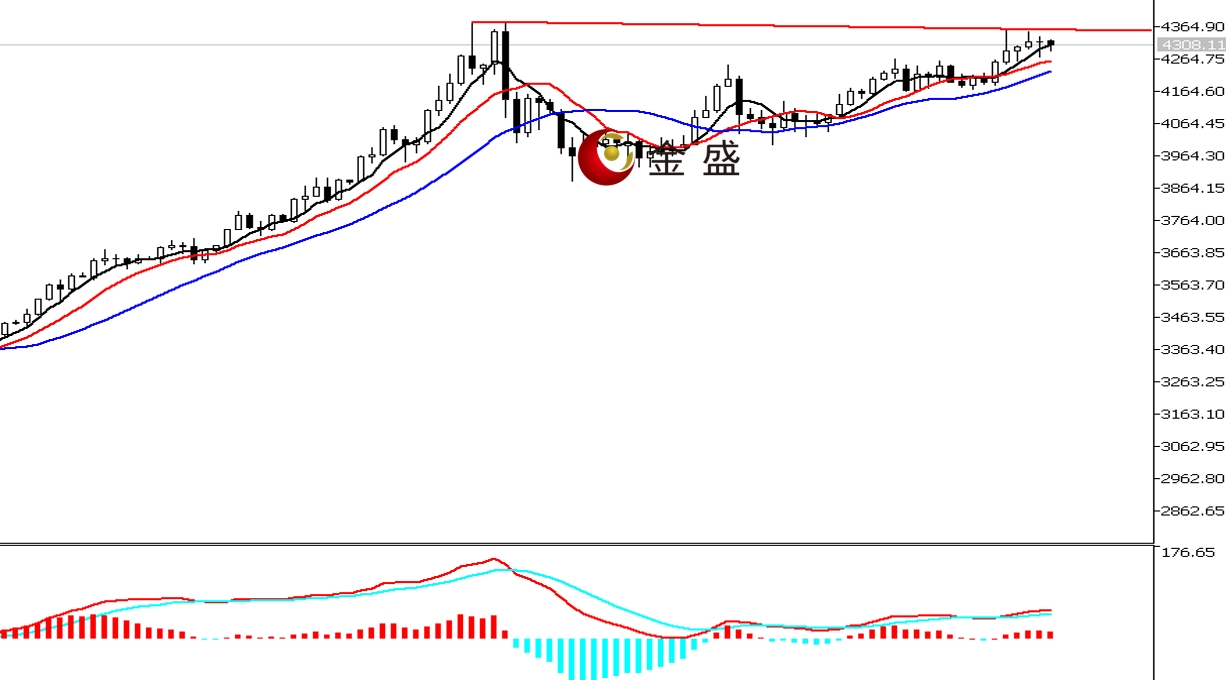 前一个交易日,白银承压64美元关口横盘数小时,亚盘一小时下挫逾1%,走出震荡结构。午后创当日低点62.12美元,并拐头震荡上行。晚盘时段,行情延续反扑,多头收复日内大部分跌幅,最终收长下影的阴星。均线系统多头排列,对价格上行构成支撑。MACD指标快慢线零轴上方现金叉,做多的动能为主。白银延续上行趋势,价格围绕64美元一带盘整逾四天,K线反转信号不明显,价格未失守五周期均线。行情高位震荡偏强,后市关注前高的真假破位。