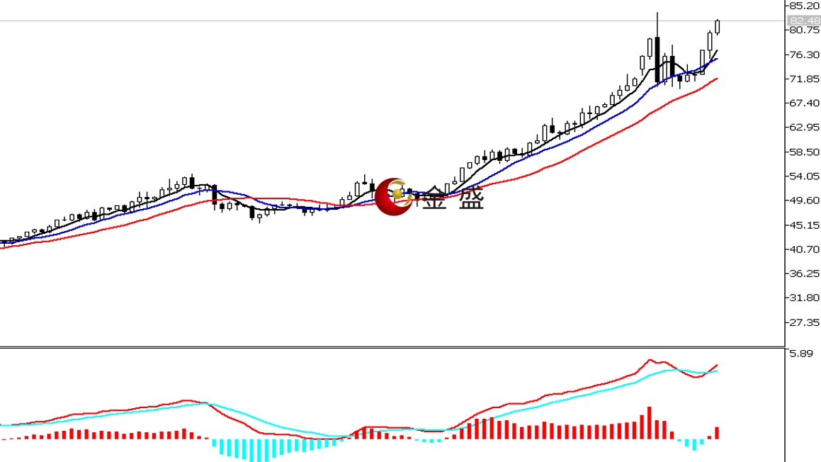 前一个交易日,白盘时段,行情依托75.5美元一带短暂休整后转涨,价格快速冲上79美元大关。晚盘时段,白银涨势不减,价格继续上行至80美元附近,日图再收阳线。均线系统多头排列,运行在价格下方形成支撑。MACD指标快慢线零轴上方现金叉,做多的动能为主。白银上行趋势不变,上周受保证金上调有所回落,但走势下行不畅。行情以高位盘整为主,走势形成U型结构。短期关注前高一带的真假突破。