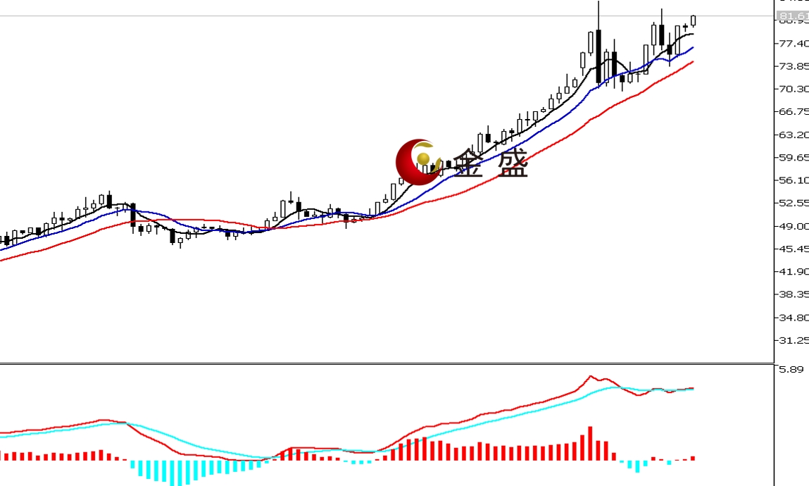 前一个交易日,白盘时段,白银表现强于黄金,行情震荡上行,午后价格重返78美元一带。晚盘时段,行情涨势延续,且有加速的迹象,价格突破80美元关口,最终收饱满中大阳线。均线系统多头排列,对价格上行构成支撑。MACD指标快慢线零轴上方走平,做多的动能为主。白银上行趋势不变,行情高位盘整形成U型结构,区间盘整逐渐对多头有利。在商品指数年度再平衡和芝商所上调保证金的压制下,银价不跌反涨,后市偏向有新高。