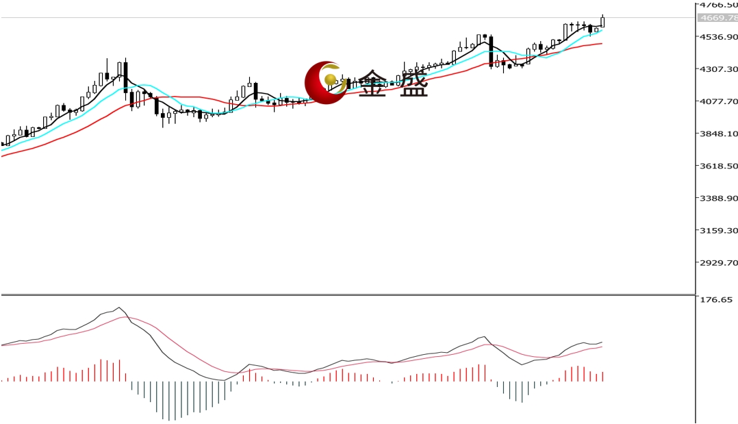 前一个交易日,白盘时段,银价承压93美元一带震荡下行,午后依托90美元关口横盘整理。晚盘时段,行情延续下挫,盘中一小时走低三美金,价格最低至86.84美元,尾盘有所反抽,最终收阴线。均线系统多头排列,运行在价格下方形成支撑。MACD指标快慢线零轴上方现金叉,做多的动能为主。白银上行趋势不变,上周前三日上涨,后半周以区间整理为主。今天早盘受消息影响再度拉升,价格创历史新高,操作上低吸为主。