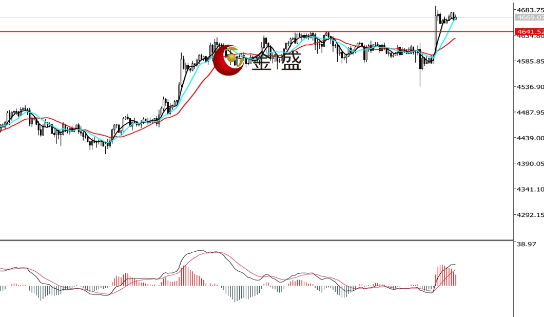 前一个交易日,最热美联储主席人选生变,打击市场的降息预期。美指99美元上方先跌后涨收小K线。黄金大部分时间延续高位休整,晚盘短暂跳水后反抽,4600美元关口失而复得,最终收阴线。周末特朗普威胁要对多个欧洲国家加征10%的关税,市场避险情绪升温。黄金早盘高开高走,开市一小时拉升九十美金,随后以横盘休整为主。小时周期,均线系统多头排列,价格围绕短期均线震荡。MACD指标快慢线零轴附近现金叉,做多的动能增强。黄金上行趋势不变,上周行情围绕4580—4640横盘四日,周五尝试向下变盘失败。今天早盘强势向上突破,亚盘一根大阳线之后横盘近十个小时,但回落空间有限,可见多头获利了结的意愿不强。4640美元一带形成强支撑区,操作上调整做多为主。