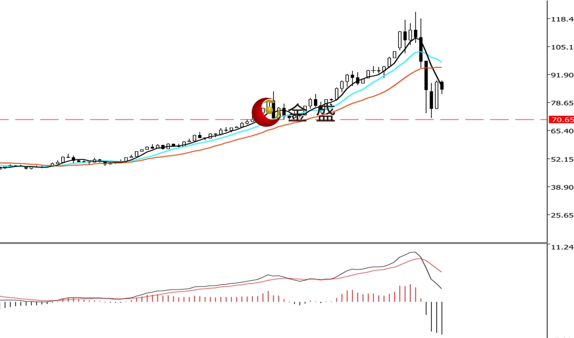 前一个交易日,白盘时段,行情自75美元附近震荡上行,多价格突破80美元关口加速走高,午后收复周一全部跌幅。晚盘时段,行情涨势减慢,价格最高至89.12美元,日图收饱满阳线。均线系统不断收敛,运行在价格上方形成阻碍。MACD指标快慢线零轴上方现死叉,做空的动能为主。白银回踩前一波暴涨的起点止跌回升,确认70美元一带的支撑有效。市场恐慌情绪有所缓和,行情将进入高位休整,操作上高抛低吸。