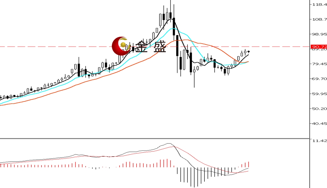 前一个交易日,凌晨时段,白银震荡上行至当日高点89美元一带,亚盘快速调整,一小时下挫近三美金,价格跌至日内低点84.94美元。午后收复日内大部分跌幅。晚盘横盘整理为主,最终收小阳线。均线系统收敛向上拐头,运行在价格下方构成支撑。MACD指标快慢线零轴附近现金叉,做多的动能增强。白银运行在箱体结构内。价格连续多日反弹收阳,昨日出现上行乏力的迹象,上方关注90美元一带的压力,下方关注85美元附近的支撑,操作上高抛低吸。